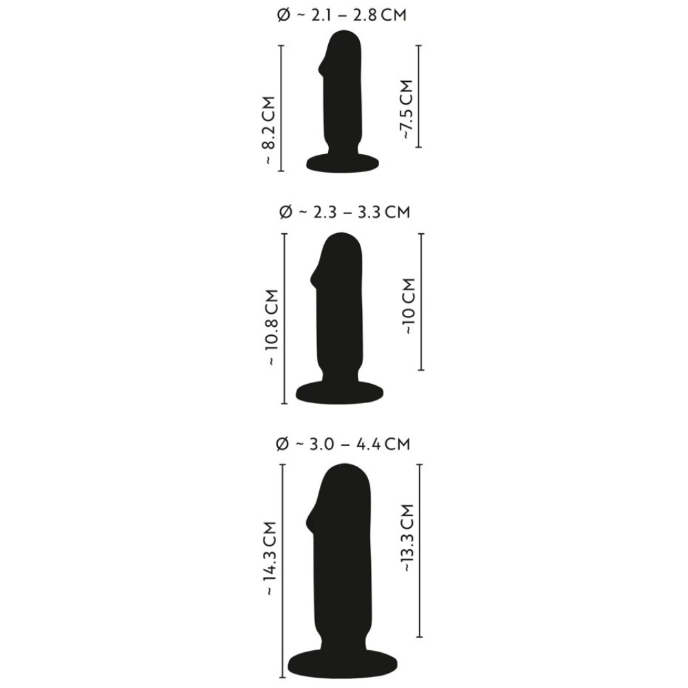 - Anos Anal Tıkacı Eğitim Seti, anal oyunu keşfetmeye yeni başlayanlar veya deneyimlerini artırmak isteyenler için tasarlanmış özel bir set. Farklı boyut ve ağırlıklardaki üç anal tıkaç, arka oda heyecanının yanı sıra esneme ve rahatlamada kademeli ilerleme sağlar. Her bir tıkaç, gerçekçi bir deneyim için kalıplanmış penis ucu tasarımına sahiptir ve geniş emme tabanı, kayma olmadan güvenli ve uzun süreli kullanım imkanı sunar. Bu taban aynı zamanda eller serbest kullanım için idealdir, böylece kullanıcılar oyun sırasında tamamen özgür olurlar. Setin esnek yapısı, kullanıcının vücut hatlarına uyum sağlayarak konforlu bir deneyim sunar.