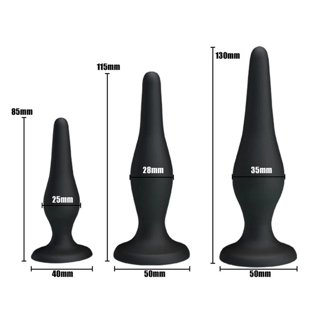 - Bu kit, anal uyarım deneyiminizi zenginleştirmek için tasarlanmış, kullanıcı dostu üç adet çift katmanlı silikon anal plug içerir. Her bir plug, kolay yerleştirme sağlamak amacıyla pürüzsüz ve konik bir yapıya sahiptir, böylece kullanımı son derece rahat ve keyifli hale gelir.